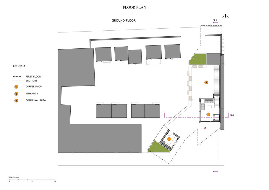 The core objective of the project was to design a new building within the given site boundaries, taking into full consideration the needs of two selected local artists. These artists were chosen based on their engagement with the community and their specific spatial and functional requirements for their creative practices. The building had to serve as both a working and exhibition space, while also embodying sustainable and environmentally responsible design principles.