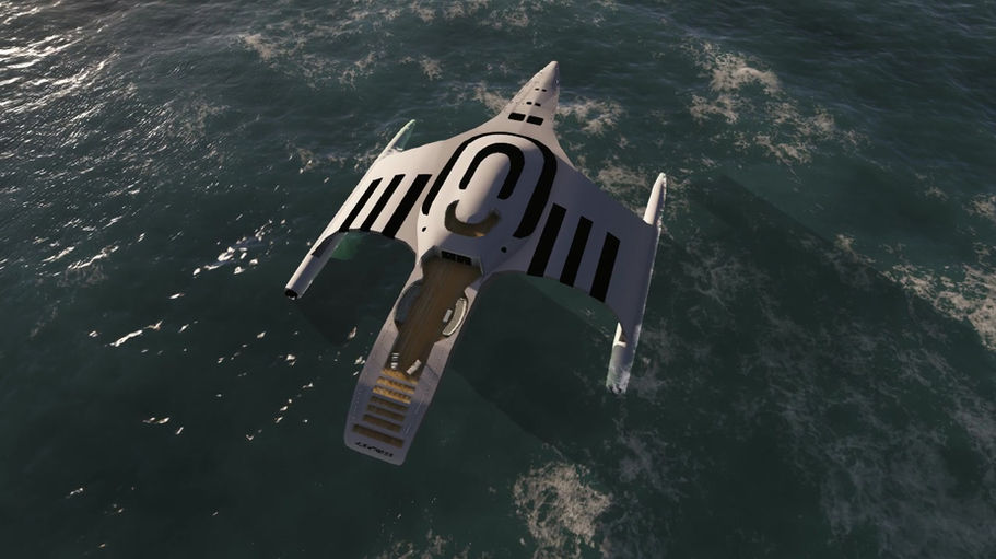Black lines on the wings represent piano keys, symbolizing a musical connection between the yacht and the sea. Conceptually, as the wings touch the water, they "play" a harmonious melody—suggesting that the vessel interacts with the ocean like an instrument.